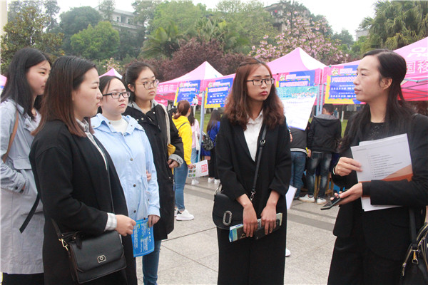 此次双选会受到了公司领导、老师高度重视,公司党总支书记覃华艳、辅导员陈怡君、刘川江老师亲临招聘会现场,并就用人单位招聘条件以及公司人才培养方案的有关话题与参会的单位代表和毕业生进行了亲切交流。在本次招聘会现场,气氛良好,秩序井然,应聘者都精心准备,自信满满地与招聘人员交流,主动了解用人单位的情况。参加此次双选会的除了毕业生之外,公司大一至大三的同学也前来观摩和咨询。在采访中了解到,他们主要是想提前了解一下市场对教师的需求量,以此在接下来的老员工活里有针对性地增强自己的综合素质以及实践经验。