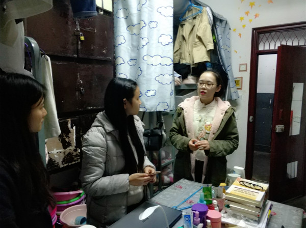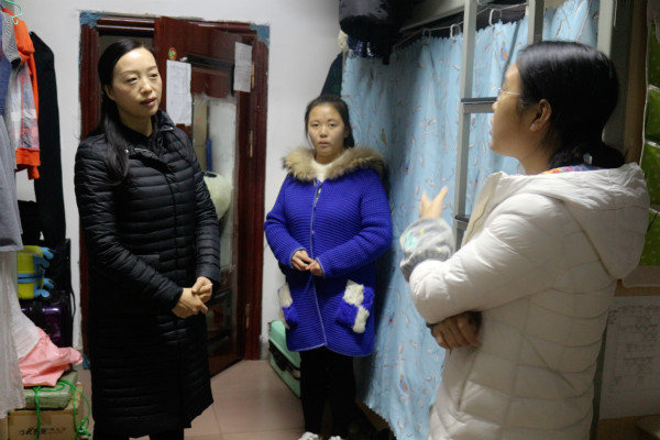 2017年12月1日晚9点,公司hy8590发现财富党总支副书记覃华艳、学工办主任许小涛老师、辅导员陈怡君老师、辅导员曾晓芸老师分别带队走访我院员工宿舍。hy8590发现财富团总支宣传部、员工会纪检部负责人陪同走访。
