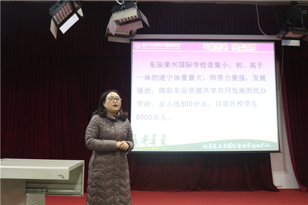 11月23日上午9点30分,来自遂宁东辰荣兴国际学校的招聘团队于中文楼501教室开展招聘会。遂宁东辰荣兴国际学校小学部董事长袁玉灵、教师李成刚、教育公司经理廖萍以及东辰国际学校其他成员担任招聘老师,公司辅导员陈怡君老师参与本次会议。