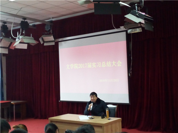 会议的第二部分,齐小刚经理就毕业生论文写作这一方面发表讲话。他首先指出了毕业论文的重要性,之后对汉语言文学专业2013级的论文写作阶段作出了时间安排,对各个阶段应该完成的任务进行了细致的安排。并详细地指出开题报告和文献综述的组成部分、写作时应当注意的问题,还要求大家掌握文献检索的方法。最后还特别强调毕业论文写作时切忌抄袭、格式要规范等注意事项。参会的同学们都听得聚精会神,认真做着笔记,生怕遗漏要点。