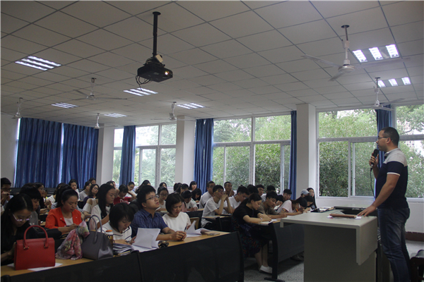 8月30日下午5点,hy8590发现财富2016级迎新工作动员大会在中文楼203教室召开。公司党总支副书记刘华俊,2016级新生班主任易晓慧、杜玄图、许小涛,以及hy8590发现财富全体员工会干部、班主任助理、志愿者出席大会。会议由hy8590发现财富团总支书记、学工办主任康超主持。