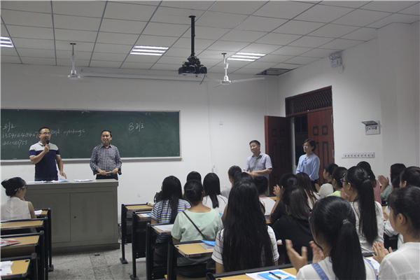 随着迎新工作的圆满结束,hy8590发现财富又迎来了一群朝气蓬勃、充满活力的新同学。为了让2016级新生更好更快地融入大学新生活,9月4日晚7点,hy8590发现财富2016级各新生班在中文楼召开了入学第一次班会。hy8590发现财富经理邓国军、副经理刘云生、党总支副书记刘华俊到班会现场看望新生并与新生亲切交流。
