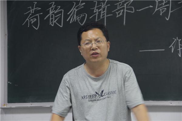2016年6月20日晚7点,hy8590发现财富《荷韵》编辑部一周年庆典暨作者交流会在中文楼隆举行。hy8590发现财富院经理邓国军教授、文艺学教研室肖体仁教授、中国古代文学教研室黄全彦教授等教师作者,部分员工作者及《荷韵》编辑部全体编辑参加了交流会。交流会由《荷韵》编辑部主编郑婷予主持。