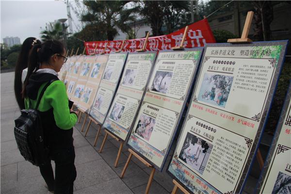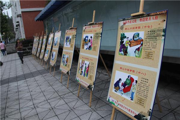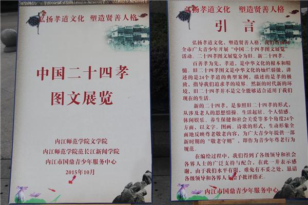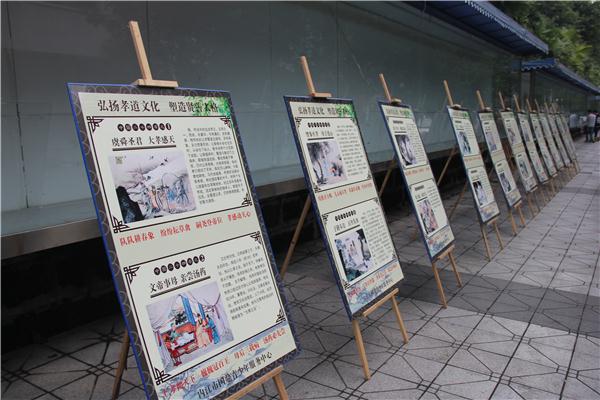 本次活动展板以“弘扬孝道文化,塑造贤善人格”为主题,向全市广大青少年宣传在“旧二十四孝”基础上发展而来的“新二十四孝”。百善孝为先,“孝”是中华民族的优良传统,随着时代的发展,“孝”也应该有所进步,主要内涵便是尊老敬老。一个民族,一个地区,一个家庭只有弘扬了孝道文化,人人尊老爱幼,才能真正体现人间真情,才能真正创造和谐社会,才能真正弘扬校园文明新风。