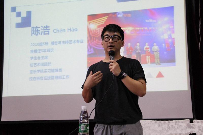为帮助文苑学子认清目标,树立信心,在老员工活里更加充分地展现自我,公司邀请到了2010届播音主持专业毕业生陈浩回校,在中文楼501教室给学弟学妹们带来了一场励志讲座。