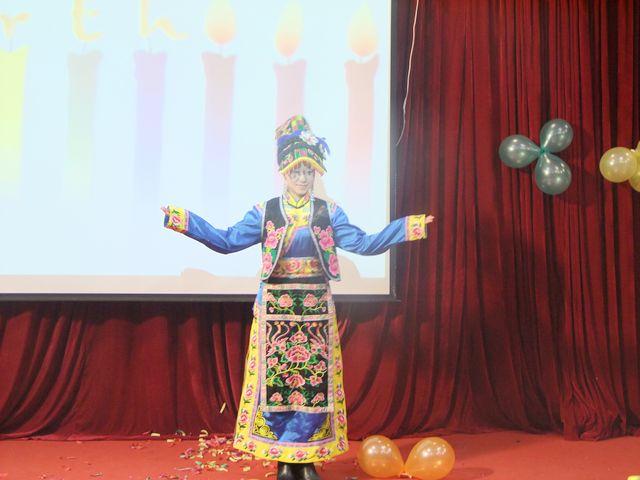 民族服装秀展示拉开了第三篇章的序幕,穿戴着特色服饰的模特展现出羌族、藏族、彝族的风貌。欢快活泼的女声独唱《海芋恋》引得在场同学纷纷合唱。小品《今天的幸福》,两位女生反串表演,讲述了离婚夫妻之间的趣事儿。