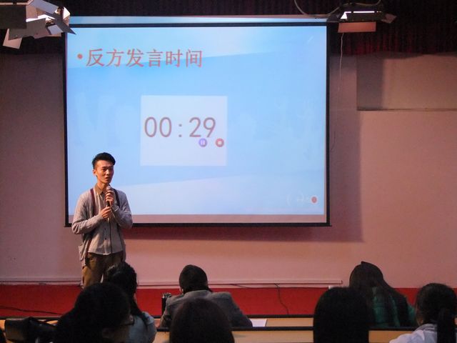 为挑选优秀辩手参加学校即将举行的“弘扬法治精神,构建和谐校园”辩论赛,10月30晚上7点,我在中文楼501教室举行了辩论赛选拔赛。团总支书记、学工办主任康超老师、实习辅导员牟俊威以及李晋瑞学姐作为本次比赛评委参加了此次辩论赛。