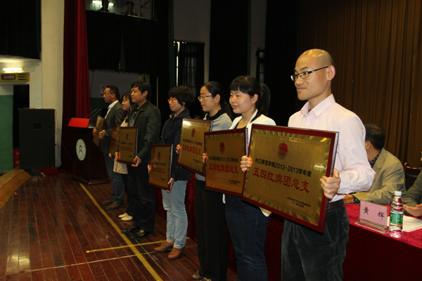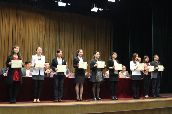 大会现场,校领导为获奖的先进个人和集体代表进行了颁奖。