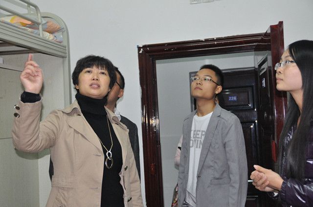 王英老师对21幢女生宿舍逐一进行了了解,对不合格的寝室提出了详细的要求,要求同学们严格按照标准化宿舍和星级文明寝室建设的标准做好寝室内务和卫生。王英老师亦针对同学们寝室卫生中存在的不足作了以下四方面的总结。即:一、箱子的摆放应该是整齐规范的,应做到整洁大方。二、寝室地面应经常清洗。三、卫生死角要特别引起重视。四、墙壁上和衣柜上要尽量避免乱贴乱挂东西。