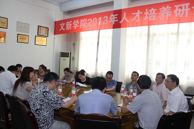 7月14日下午,文新学院2013年人才培养研讨会在中文楼四楼会议室举行,来自内江市部分中小学的领导和专家齐聚一堂,就人才培养和教育改革交流经验。文新学院经理邓国军教授,副经理刘云生教授、高佳博士,党总支副书记王英老师等学院领导以及各教研室负责人参加此次研讨会。会议由副经理刘云生主持。