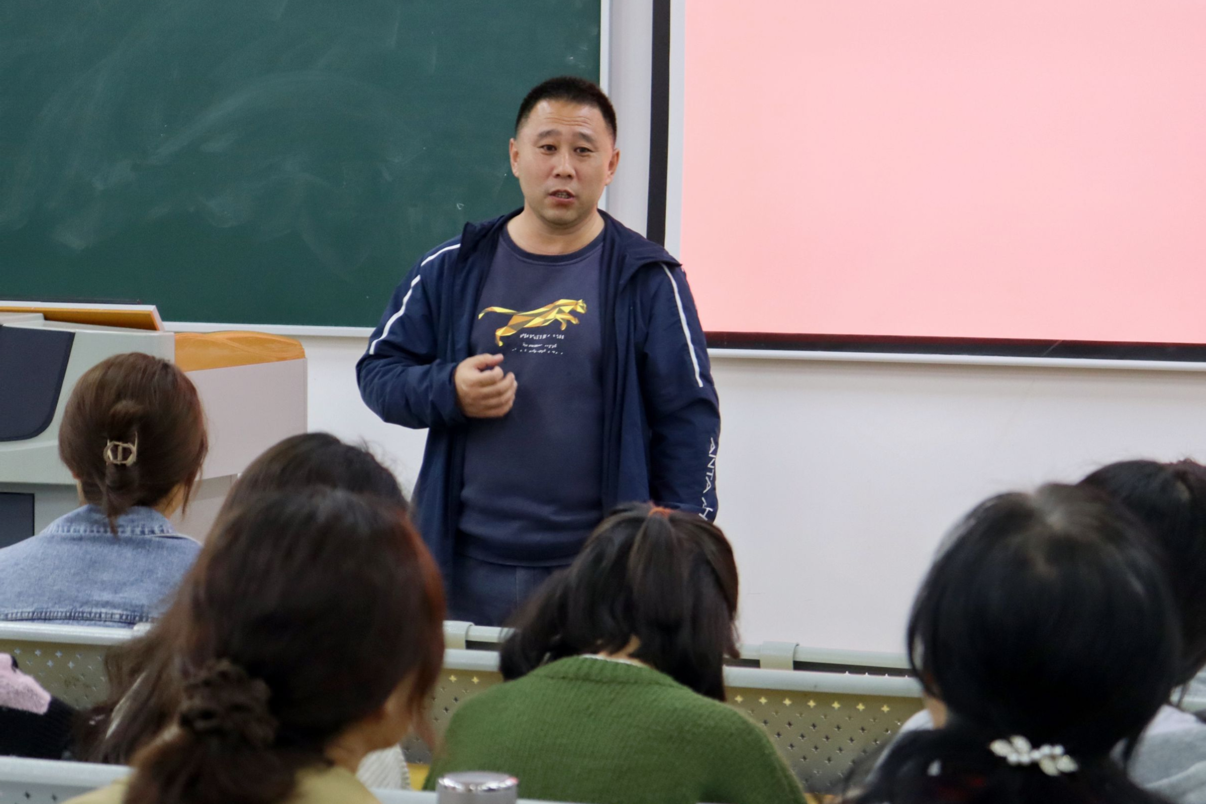在比赛过程中,各位老师在充分展现学科专业能力的同时注重与同学们的有效互动,将“教学相长”体现得淋漓尽致。其中,汪双英为我们讲解了《青春之歌》的主题:表层上是现代知识分子的革命性成长,深层上则蕴含了20世纪中国知识分子命运和女性个体命运的命题,与五四以来新文学的启蒙主题达成了精神联系。汪双英循循善诱,引导同学们深入理解作品。李爱平就“文化自信和古代文学之间的联系”向同学们提问,引出边塞诗派的产生,进而介绍了盛唐边塞诗人王昌龄及其作品《从军行》。在赏析时,李爱平表示:“声音是情感的表达,在此诗中深有体现。”同学们在老师的指导下对边塞诗派的了解更上一层楼;张文彬则贯彻寓教于乐的教育理念,以声情并茂的台词朗诵拉开了“艺术形象”课堂的序幕。在课堂中,张文彬为同学们讲解了艺术形象的主观性和创造性。他表示:“情景交融,艺术形象的产生离不开人的创造。”